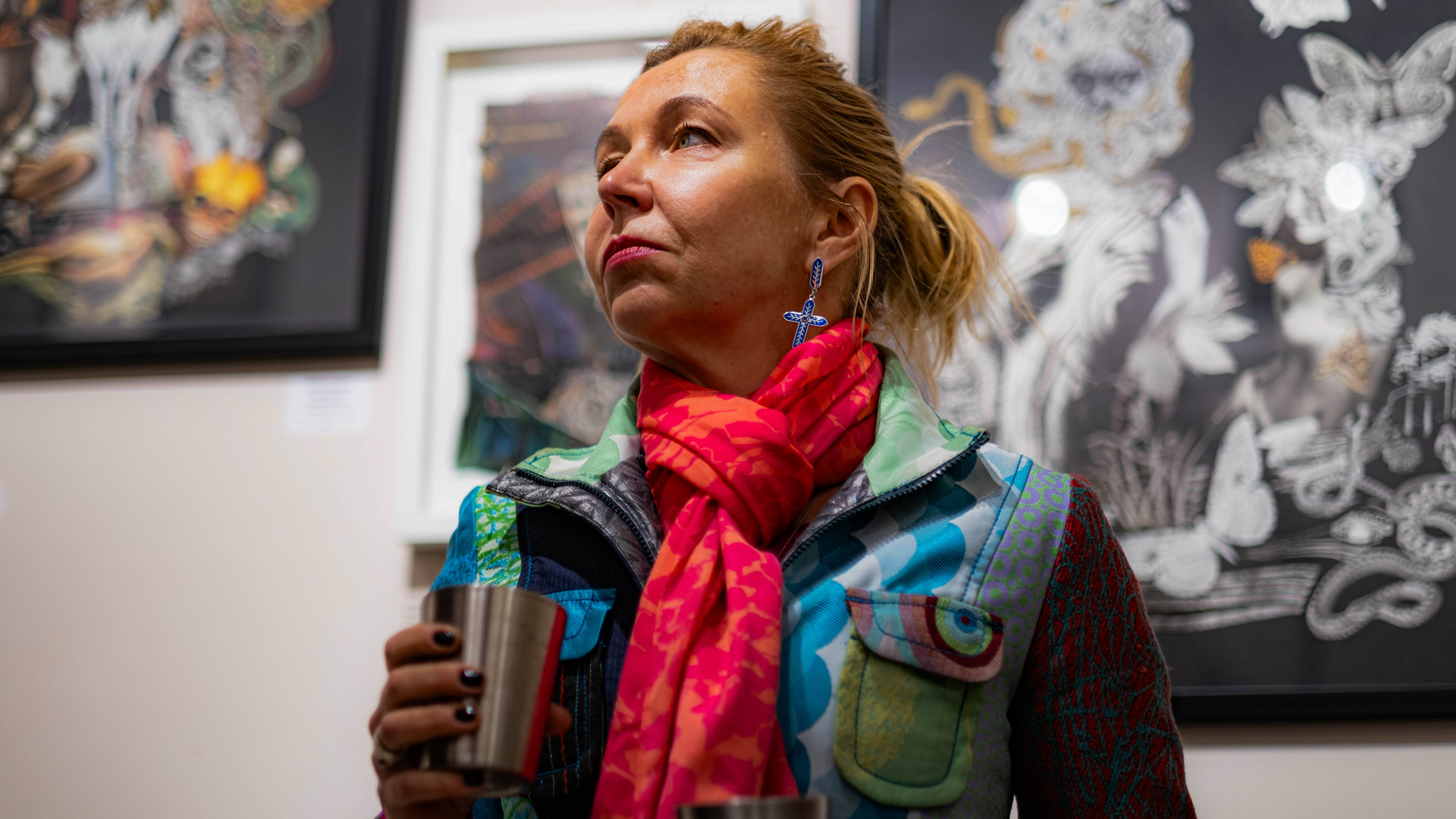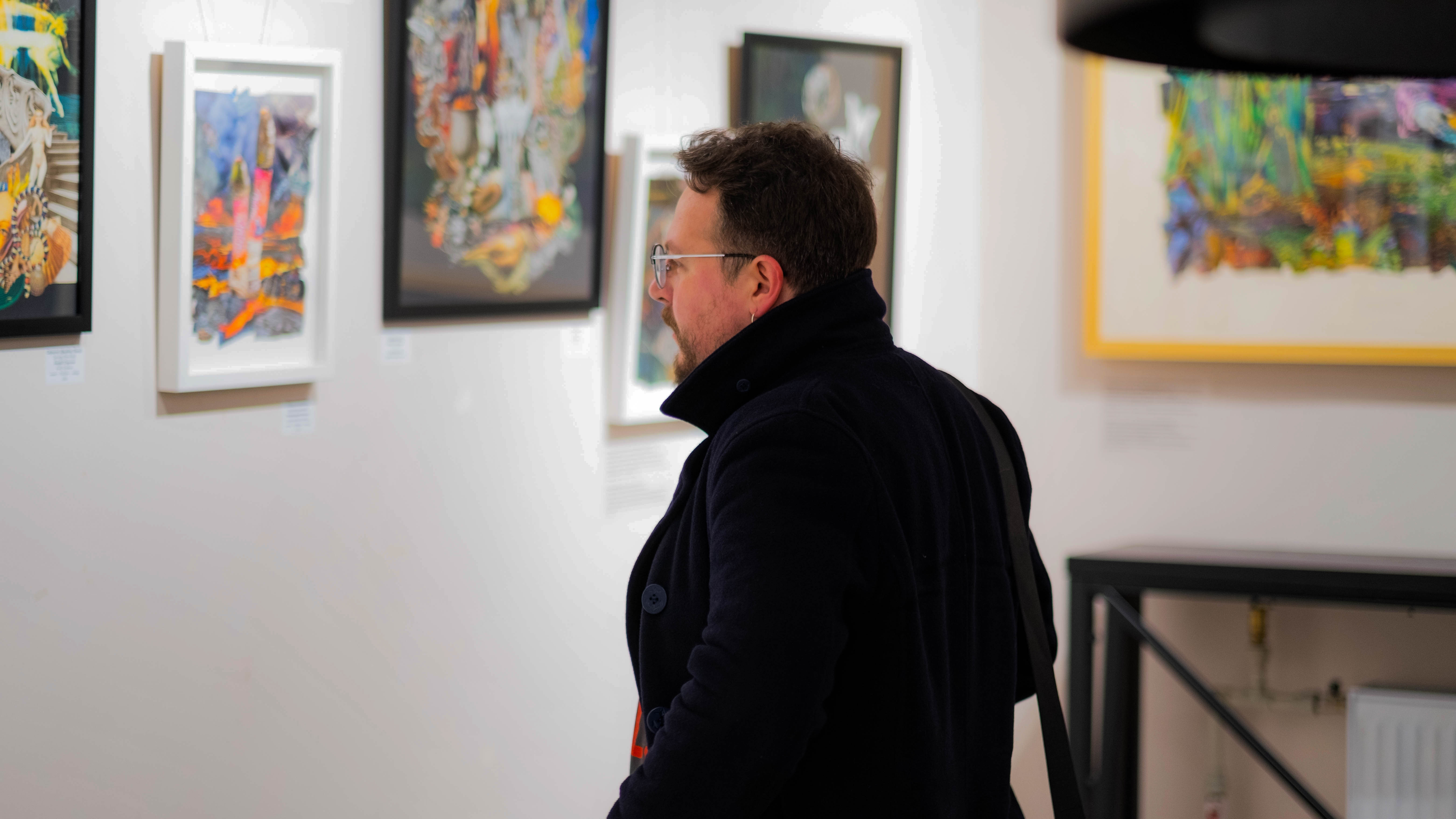Колажі Олександри зібрані з фрагментів журналів і відходів, що перетворює переробку в частину художнього висловлювання.